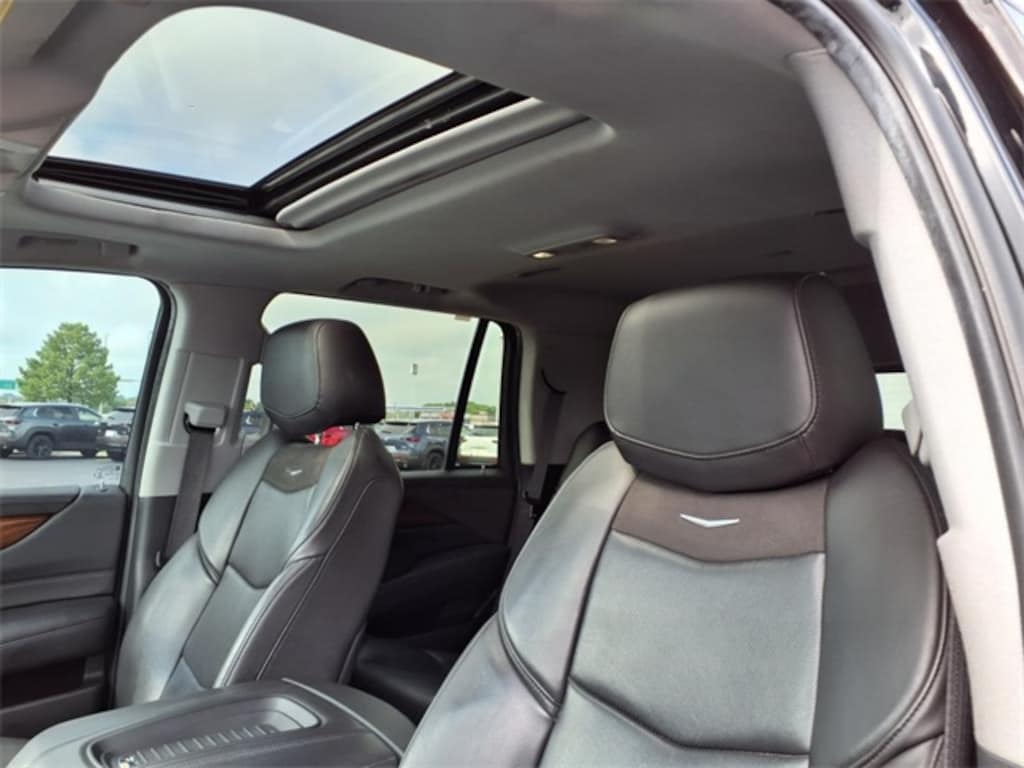 All-Weather Floor Liner Package (LPO), Driver Awareness Package (Automatic Emergency Braking, Forward Collision Alert, IntelliBeam Automatic High Beam On/Off, Lane Change Alert w/Side Blind Zone Alert, Lane Keep Assist w/Lane Departure Warning, Rear Cross Traffic Alert, and Safety Alert Seat), Escalade Sport Edition (Gloss Black Front Grille and Wheels: 22" x 9" 12-Spoke Alloy), Preferred Equipment Group 1SB (Power Configurable Second Row Bucket Seats, Power Tilt-Sliding Sunroof w/Express-Open/Close, Rear Camera Mirror, Rear Camera Mirror Washer, and Reconfigurable 4-Color Head-Up Display), Theft-Deterrent Package (Inclination Sensor, Theft-Deterrent Alarm System, and Vehicle Interior Movement Sensor), 12-Way Power Front Passenger Seat Adjuster, 16 Speakers, 2-Presets Memory For Driver Seat Adjuster, 3.23 Axle Ratio, 3rd row seats: split-bench, 4-Wheel Disc Brakes, ABS brakes, Adaptive suspension, Adjustable pedals, Air Conditioning, Alloy wheels, AM/FM radio: SiriusXM, Apple CarPlay/Android Auto, Auto High-beam Headlights, Auto tilt-away steering wheel, Auto-dimming door mirrors, Auto-dimming Rear-View mirror, Auto-leveling suspension, Automatic temperature control, Black Front License Plate Bracket, Bodyside moldings, Bose Centerpoint 16 Speaker Surround Sound System, Brake assist, Bumpers: body-color, CD player, Compass, Delay-off headlights, Driver door bin, Driver vanity mirror, Dual front impact airbags, Dual front side impact airbags, DVD-Audio, Electronic Stability Control, Emergency communication system: OnStar and Cadillac connected services capable, Exterior Parking Camera Rear, Front anti-roll bar, Front Bucket Seats, Front Center Armrest w/Storage, Front dual zone A/C, Front reading lights, Front wheel independent suspension, Fully automatic headlights, Garage door transmitter, HD Radio, Heads-Up Display, Heated & Cooled Driver & Front Passenger Seats, Heated door mirrors, Heated front seats, Heated rear seats, Heated steering wheel, Illuminated entry, Leather Seating Surfaces, Leather Shift Knob, Leather steering wheel, Low tire pressure warning, Magnetic Ride Control Suspension, Memory seat, Navigation System, Occupant sensing airbag, Outside temperature display, Overhead airbag, Overhead console, Panic alarm, Passenger door bin, Passenger vanity mirror, Pedal memory, Power door mirrors, Power driver seat, Power Liftgate, Power moonroof, Power passenger seat, Power steering, Power windows, Radio data system, Radio: AM/FM Cadillac User Experience w/Nav, Rain sensing wipers, Rear air conditioning, Rear anti-roll bar, Rear audio controls, Rear reading lights, Rear window defroster, Rear window wiper, Remote keyless entry, Security system, Single Slot CD/MP3 Player, SiriusXM NavTraffic, SiriusXM Radio, Speed control, Split folding rear seat, Spoiler, Steering wheel memory, Steering wheel mounted audio controls, Tachometer, Telescoping steering wheel, Tilt steering wheel, Traction control, Trip computer, Turn signal indicator mirrors, Variably intermittent wipers, Ventilated front seats, and Wheels: 22" x 9" 7-Spoke Alloy w/Chrome Inserts.