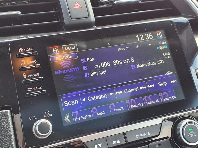 17" Alloy Wheels, 4-Wheel Disc Brakes, 8 Speakers, ABS brakes, Air Conditioning, Alloy wheels, AM/FM radio: XM, Apple CarPlay/Android Auto, Auto High-beam Headlights, Automatic temperature control, Brake assist, Bumpers: body-color, Cloth Seat Trim, Delay-off headlights, Driver door bin, Driver vanity mirror, Dual front impact airbags, Dual front side impact airbags, Electronic Stability Control, Emergency communication system: HondaLink, Exterior Parking Camera Rear, Forward collision: Collision Mitigation Braking System (CMBS) + FCW mitigation, Four wheel independent suspension, Front anti-roll bar, Front Bucket Seats, Front Center Armrest, Front dual zone A/C, Front fog lights, Front reading lights, Fully automatic headlights, Heated door mirrors, Heated Front Bucket Seats, Heated front seats, Illuminated entry, Lane departure: Lane Keeping Assist System (LKAS) active, Leather Shift Knob, Low tire pressure warning, Occupant sensing airbag, Outside temperature display, Overhead airbag, Overhead console, Panic alarm, Passenger door bin, Passenger vanity mirror, Power door mirrors, Power driver seat, Power moonroof, Power steering, Power windows, Radio data system, Radio: 180-Watt AM/FM/HD/SiriusXM Audio System, Rear anti-roll bar, Rear seat center armrest, Rear window defroster, Remote keyless entry, Security system, Speed control, Speed-sensing steering, Speed-Sensitive Wipers, Split folding rear seat, Spoiler, Steering wheel mounted audio controls, Tachometer, Telescoping steering wheel, Tilt steering wheel, Traction control, Trip computer, and Variably intermittent wipers.