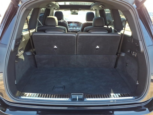 13 Speakers, 3rd row seats: split-bench, 4-Wheel Disc Brakes, 7-Seat Configuration, ABS brakes, Adaptive suspension, Air Conditioning, Alloy wheels, AM/FM radio: SiriusXM, Apple CarPlay®/Android Auto®, Auto High-beam Headlights, Auto tilt-away steering wheel, Auto-dimming door mirrors, Auto-dimming Rear-View mirror, Auto-leveling suspension, Automatic temperature control, Brake assist, Bumpers: body-color, Child-Seat-Sensing Airbag, Compass, Delay-off headlights, Driver door bin, Driver vanity mirror, Dual front impact airbags, Dual front side impact airbags, Electronic Stability Control, Emergency communication system: eCall Emergency System, Exterior Parking Camera Rear, Four wheel independent suspension, Front anti-roll bar, Front Bucket Seats, Front Center Armrest w/Storage, Front dual zone A/C, Front reading lights, Fully automatic headlights, Garage door transmitter: HomeLink, Head restraints memory, Heated and Ventilated Power Front Seats with Memory, Heated door mirrors, Heated front seats, Illuminated entry, Knee airbag, Leather steering wheel, Low tire pressure warning, MB-Tex Upholstery, Memory seat, Navigation system: MB Navigation, Occupant sensing airbag, Outside temperature display, Overhead airbag, Overhead console, Panic alarm, Passenger door bin, Passenger vanity mirror, Power adjustable front head restraints, Power door mirrors, Power driver seat, Power Liftgate, Power moonroof: Panorama, Power passenger seat, Power steering, Power windows, Premium audio system: MBUX, Radio: Burmester® Surround Sound System, Rain sensing wipers, Rear air conditioning, Rear anti-roll bar, Rear dual zone A/C, Rear fog lights, Rear reading lights, Rear seat center armrest, Rear window defroster, Rear window wiper, Reclining 3rd row seat, Remote keyless entry, Security system, Speed control, Speed-sensing steering, Speed-Sensitive Wipers, Split folding rear seat, Spoiler, Steering wheel memory, Steering wheel mounted audio controls, Tachometer, Telescoping steering wheel, Tilt steering wheel, Traction control, Trip computer, Turn signal indicator mirrors, Variably intermittent wipers, Ventilated front seats, Weather band radio, and Wheels: 21" Triple 5-Spoke.