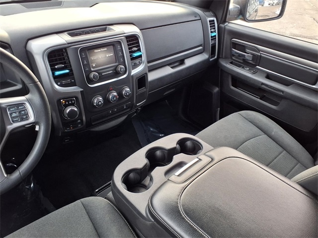 Quick Order Package 29F Warlock (4x4 Flat Black Badge, B-Pillar Black Out, Bi-Function Halogen Projector Headlamps, Black Exterior Truck Badging, Black Grille w/RAM Lettering, Black Headlamp Filler Panel, Black Powder Coated Front Bumper, Black Powder Coated Rear Bumper, Black RAM Head Tailgate Badge, Black Wheel Flares, Front Wheel Well Liners, ParkSense Rear Park Assist System, Raised Ride Height, Rear Extra HD Shock Absorbers, Semi-Gloss Black Hub, Sport Tail Lamps, Warlock, Warlock Interior Accents, and Wheels: 20" x 9" High Gloss Black Aluminum), 17" x 7" Aluminum Wheels, 3.21 Rear Axle Ratio, 4-Wheel Disc Brakes, 40/20/40 Split Bench Seat, 6 Speakers, ABS brakes, Active Grille Shutters, Air Conditioning, Alloy wheels, AM/FM radio: SiriusXM, Audio Input Jack for Mobile Devices, Black Exterior Mirrors, Brake assist, Bumpers: chrome, Center Hub, Cloth 40/20/40 Bench Seat, Compass, Delay-off headlights, Driver door bin, Dual front impact airbags, Dual front side impact airbags, Electronic Shift, Electronic Stability Control, Exterior Mirrors w/Heating Element, Front anti-roll bar, Front Armrest w/3 Cupholders, Front Center Armrest w/Storage, Front License Plate Bracket, Front reading lights, Front wheel independent suspension, Fully automatic headlights, GPS Antenna Input, Heated door mirrors, Illuminated entry, Integrated Voice Command w/Bluetooth, Low tire pressure warning, Manufacturer's Statement of Origin, Occupant sensing airbag, Outside temperature display, Overhead airbag, Overhead console, Panic alarm, ParkView Rear Back-Up Camera, Passenger door bin, Passenger vanity mirror, Power door mirrors, Power steering, Power windows, Radio data system, Radio: Uconnect 3 w/5" Display, Rear anti-roll bar, Rear seat center armrest, Rear step bumper, Remote keyless entry, Remote USB Port, Remote USB Port - Charge Only, Speed control, Storage Tray, Tachometer, Tilt steering wheel, Tip Start, Traction control, Trip computer, Variably intermittent wipers, and Voltmeter.
